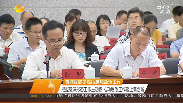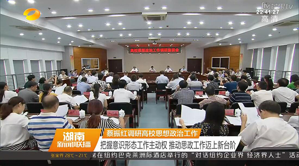 本网讯 9月21日下午,全省高校思想政治工作调研座谈会在长沙理工大学召开。省委常委、省委宣传部长蔡振红和全体与会代表深入课堂听课,长沙理工大学、金沙集团1862cc、中南大学、湖南大学、湖南师范大学、湖南第一师范学院6所高校党委书记、教师、辅导员、学生代表作了交流发言。蔡振红部长讲话强调,要进一步深入贯彻落实全国、全省高校思想政治工作会议精神,加强高校意识形态和思想政治工作,努力创新工作方法,确保高校思想政治工作始终沿着正确方向发展。
