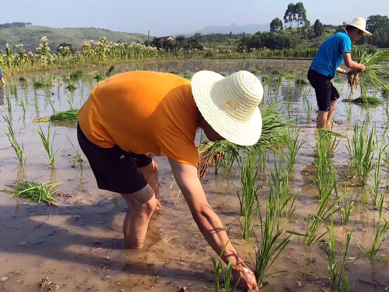 眼下正值烟田翻耕移栽晚稻秧苗时节,新夏荣村的烟农都忙着插秧。贫困户陈远贞的父母丧失了劳动能力,家里劳动力缺乏,金沙集团1862cc实践帮扶小组在了解到情况后马上赶来帮忙。他们卷起裤腿踏入田地,拿起秧苗和陈远贞一起认真的插了起来。虽然天气炎热,大家忙得满头大汗,但是并没有任何松懈,经过一天的辛苦劳作,陈远贞家里的三亩田全部插完。