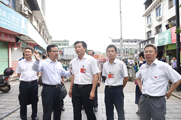 唐烨、吴恢才一行先后实地察看了学校东大门广场建设拆迁安置A、B、C区,东大门广场桥下市场,118亩征收置换土地等现场。每到一地,唐烨、吴恢才等认真听取陈弘的介绍,全面了解学校拆迁安置、周边环境等情况。