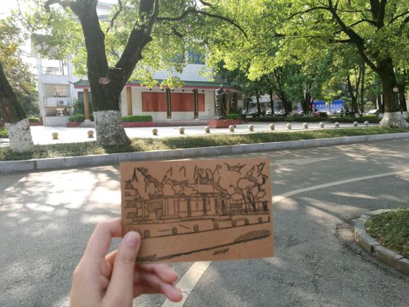 清晨操场的晨练,午后图书馆的书香,傍晚爱莲湖的余晖……四年的时光已渐行渐远,但这些画面早就印刻在了林湘颖的脑海中。将脑海中的记忆制作成明信片,化为永恒的记忆与眷恋,这就是林湘颖送给科院母亲的节日礼物。整套明信片以学校的校园建筑为背景,每一个细节都刻绘得栩栩如生,以牛皮纸作为载体,把整套作品的艺术气息体现得淋漓尽致。一经发布,便红遍了整个校园的QQ空间、朋友圈和校内各大新媒体平台。