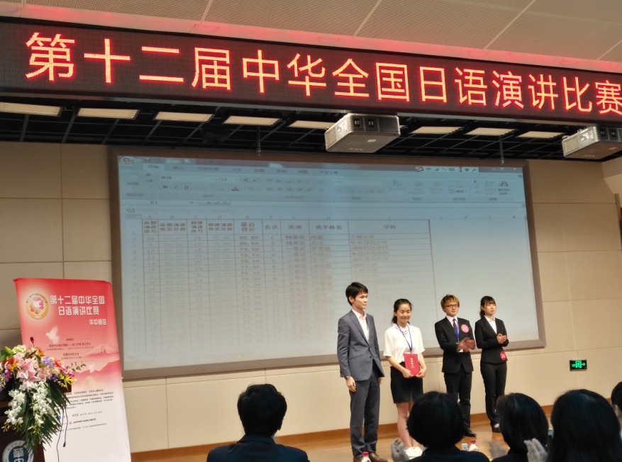 据悉,中华全国日语演讲大赛自2006年起由中国教育国际交流协会、日本华人教授会议、日本经济新闻社共同主办,中华人民共和国驻日本大使馆、中国日本友好协会、中国教育报、中国教育电视台等协办,是目前中国最高级别的日语演讲赛事。本次华中赛区预赛有来自华中科技大学、湖南大学、解放军外国语学院、安徽大学等华中四省32所大学的32名选手参赛。