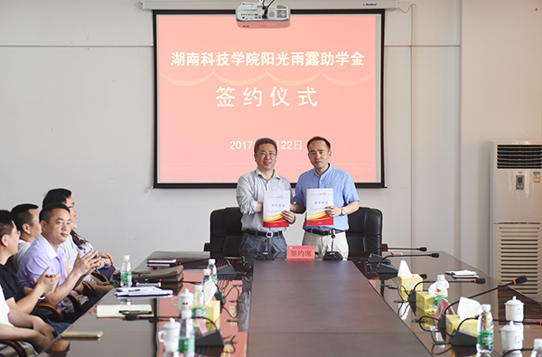 仪式上,双方就助学金捐赠达成了协议。曾宝成、陈蓝云分别代表双方在协议书上签字并合影留念。