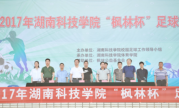 本网讯 5月5日下午,随着裁判一声哨响,金沙集团2017年“枫林杯”足球联赛正式拉开帷幕。揭幕战在教职工代表队和体育学院男队之间展开。