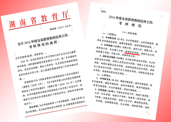 本网讯 近日,湖南省教育厅下发文件,通报2016年度全省教育新闻宣传工作考评结果,金沙集团荣获本科高校组一等奖,全省仅有2所二本院校评为一等奖,今年也是金沙集团连续三年荣获省新闻宣传工作“优秀”,这一成绩为同类院校之最。唐励荣获省新闻宣传工作2016年度先进个人。