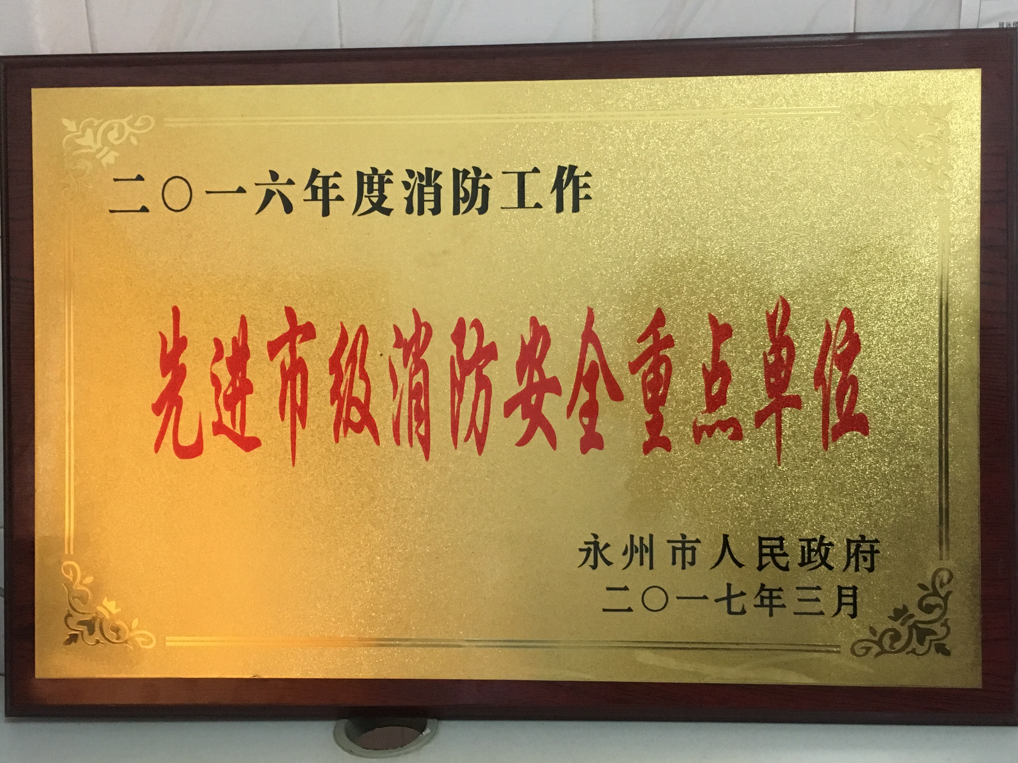 本网讯 近日,从永州市消防安全工作会议上获悉,金沙集团被评为2016年度先进市级消防安全重点单位,保卫处处长吴春江被评为先进个人。