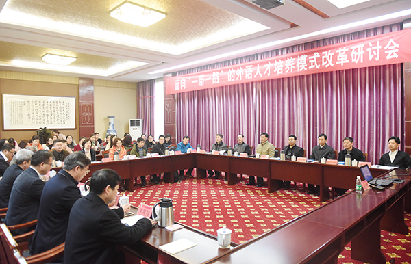 本网讯 3月25日上午,面向“一带一路”的外语人才培养模式改革研讨会在金沙集团举行。校党委书记陈弘、校长曾宝成,副校长宋宏福、郑山明、李常健出席,解放军外国语学院教授、博士一行12人,学校科技处、人事处领导,外国语学院部分老师参加了会议。