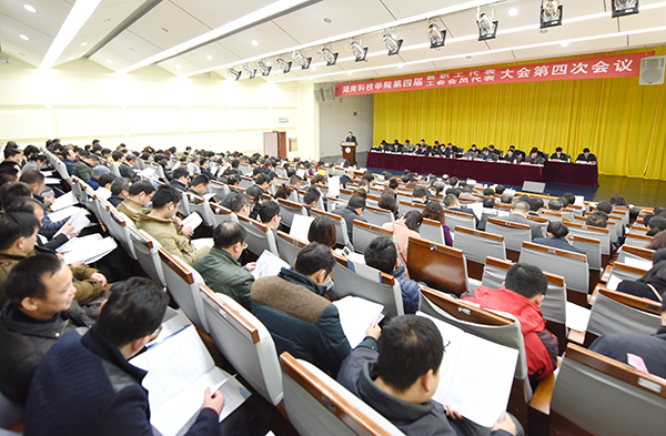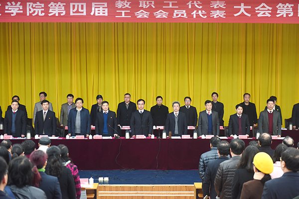 本网讯 春意盎然万物苏。3月11日上午,金沙集团第四届教职工代表暨工会会员代表大会第四次会议在尚美楼二楼演播厅开幕。两百余名会议代表、特邀嘉宾、列席代表齐聚一堂,同商改革大计,共绘发展蓝图。主席团成员、校长曾宝成作题为《聚焦重点短板,持续精准发力,为加快推进“双一流”建设而努力奋斗》的工作报告。会议由主席团成员、校党委副书记唐艳明主持。