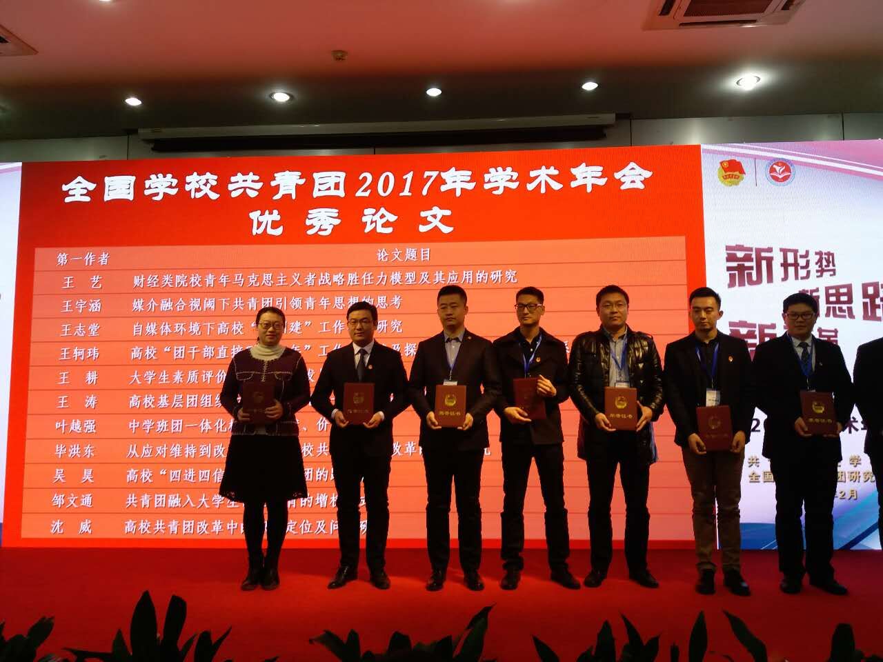 交流环节,王志堂向团中央杜汇良部长汇报了金沙集团共青团工作的经验和特色,得到杜部长的充分赞许。年会期间,主办方举办了主旨报告和优秀论文颁奖仪式。邀请到清华大学林泰教授、中国高等教育学会会长瞿振元教授、北京大学潘维教授、中国人民大学王义桅教授等知名专家学者围绕当前国内政治、经济、教育发展形势做主题报告。王志堂老师提交的《自媒体环境下高校“微团建”工作机制研究》论文荣获年会优秀论文(全国共25篇),并受邀作主题发言,受到与会领导、同仁的一致好评。