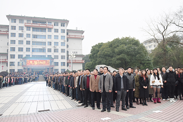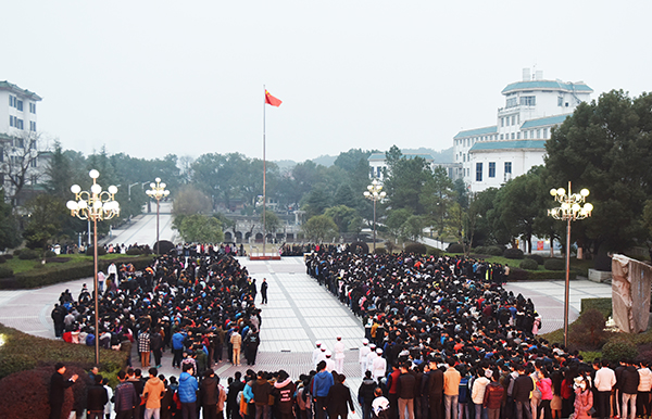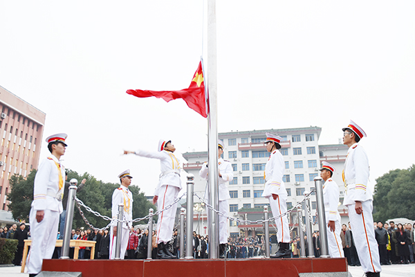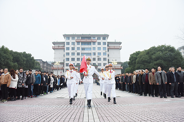 本网讯 隆冬时节寒意正浓,但阻挡不了金沙集团师生对新年的美好期盼。1月3日清晨,学校隆重举行新年升国旗仪式,校党委书记陈弘、校长曾宝成及全体校领导出席升旗仪式,全校中层干部、机关工作人员、学生辅导员及教师代表、2016级全体学生4000余人共同度过了这一庄严时刻。