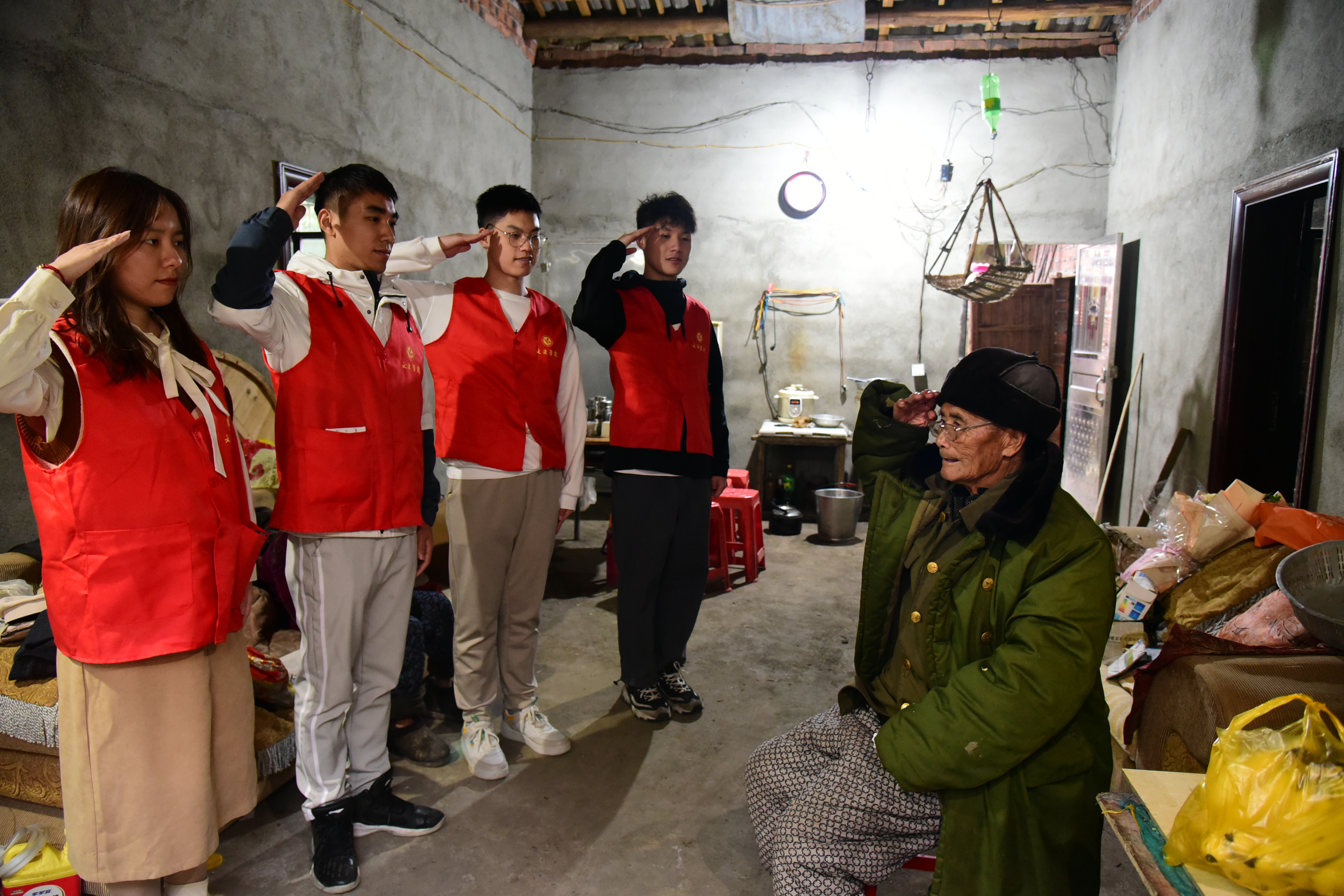 本网讯  临近重阳佳节,文法学院学生前往零陵区鹿坪村“追星”抗美援朝老兵孙吉柏,聆听老英雄讲述当年的战斗故事,感悟精神力量。