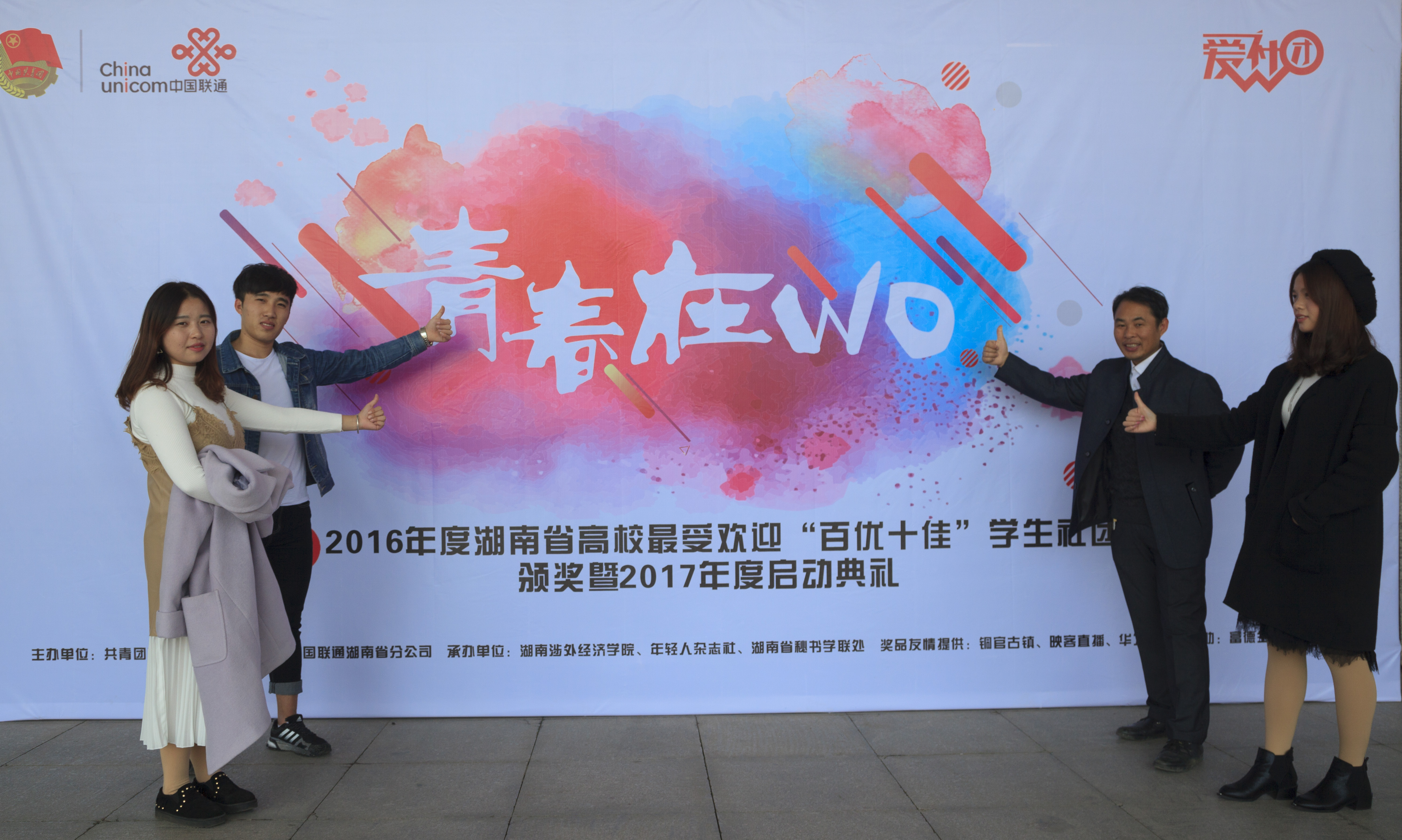 本网讯 近日,由共青团湖南省委宣传部、学校部主办的“WO爱社团”2016年度湖南省高校最受欢迎“百优十佳”学生社团颁奖典礼在长沙举行。湖南省各大高校参选社团中有10个社团获取“十佳”称号,100个社团获取“百优”学生社团称号,金沙集团绿色潇湘环保协会从全省400个社团中脱颖而出,获得湖南省高校“十佳学生社团”称号,协会指导老师胡克坚荣获“最佳指导老师奖”,会长漆盈荣获“十佳会长奖”。同时,金沙集团大学生外语协会、风荷艺术团、无线电协会荣获“百优”学生社团。