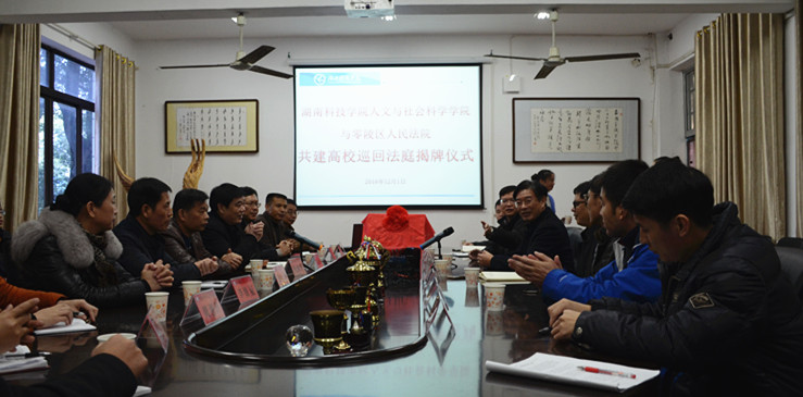 本网讯 12月1日下午,人文与社会科学学院与零陵区人民法院共建“高校巡回法庭”揭牌仪式暨“法学应用型转型发展与深化地方司法服务”主题座谈会在明德楼二楼会议室举行。零陵区人民法院院长何小春、副院长郭庆,副校长宋宏福教授出席。
