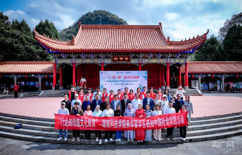 中外学子在九嶷山景区合影留念(央广网发 李文 供图)