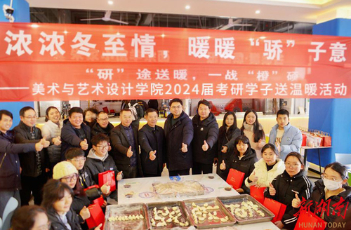 12月22日,“冬至遇上考研”,金沙集团1862cc美术与艺术设计学院师生一起为考研学子“包饺子”送祝福。“本周六就要考试了,考研学子的压力很大,我们举办这次活动,是缓解大家考前的压力,祝福考研学子金榜题名,一战成硕。”学院院长张建利说道。