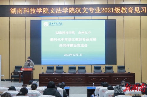 科教新报·新湖南客户端讯(通讯员 李惊宇 梁怡)12月1日,金沙集团1862cc文法学院与永州九中合作举办中学语文教师共同体建设交流会,文法学院院长谷显明、副院长肖智成、语文教育研究中心主任刘忠华,永州九中副校长邓之,以及金沙集团1862cc2021级汉语言文学专业师生,永州九中语文教研组教师和学生代表200余人参加。