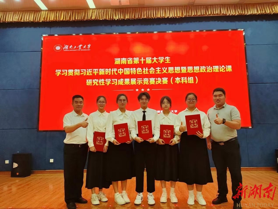 据悉,湖南省第十届大学生学习贯彻习近平新时代中国特色社会主义思想暨思想政治理论课研究性学习成果展示竞赛(本科组)由湖南省教育厅主办,湖南工业大学承办,大赛设有特等奖4项、一等奖12项。