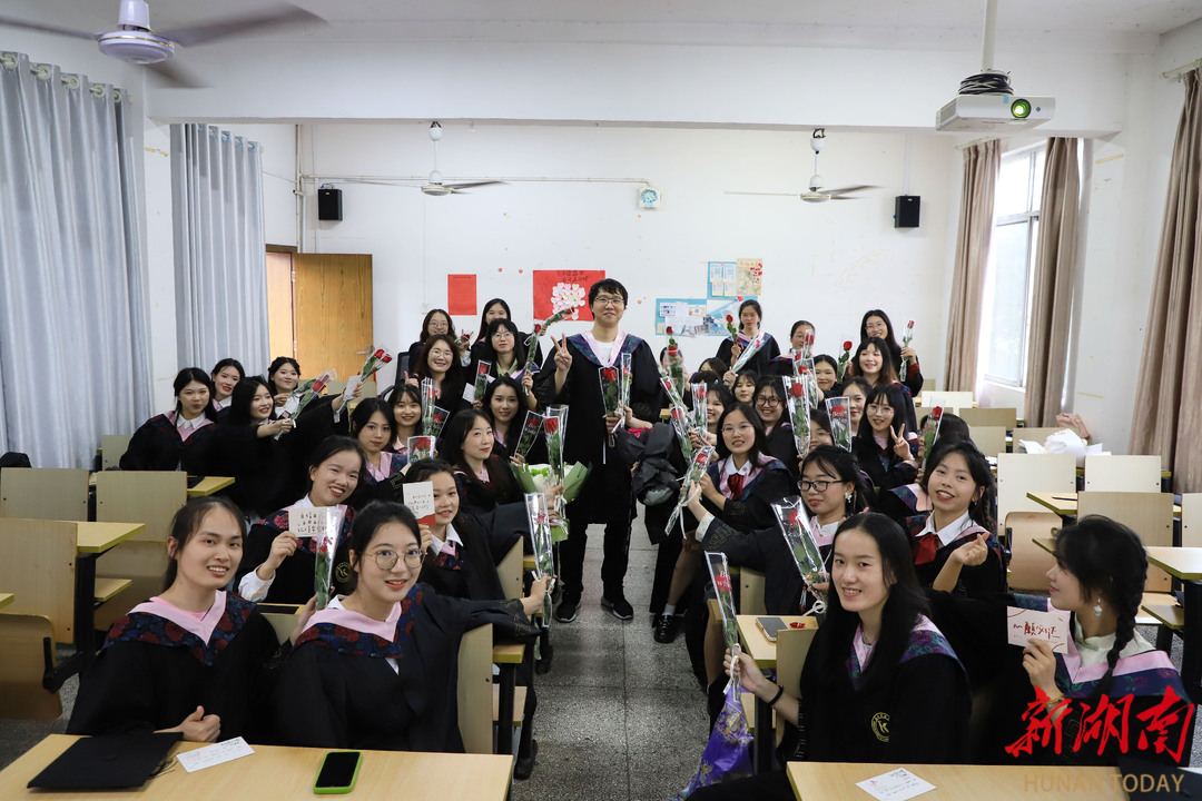 “很幸运我的大学四年遇见了你们,谢谢你们的关照和陪伴!希望毕业后,你们要好好照顾自己!”5月20日下午,金沙集团1862cc外国语学院英语师范专业2001班的40名女生,收到了一份特别的毕业礼物——精心准备的花束和手写祝福卡片。送出这份走心毕业礼物的,正是全班唯一的男生,李悟。