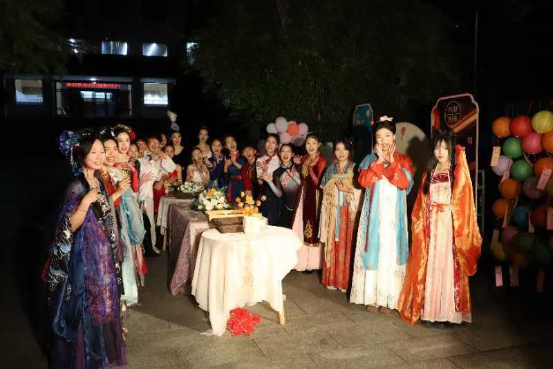 在浓浓月色之下,该校各族学生载歌载舞,欢度中秋,大家在体验中际遇古今、拾趣传统,插花、抚琴、品茗、吟诗……他们还来到愚溪河畔,放花灯祈福,通过流水千里寄相思。