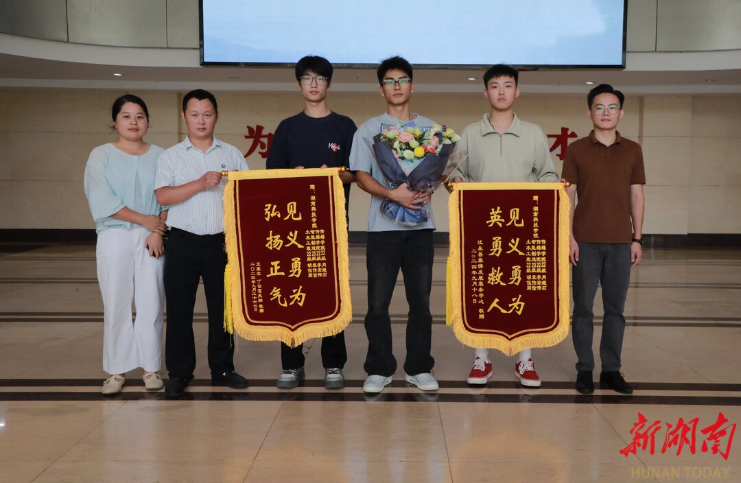 湖南日报·新湖南客户端9月26日讯(通讯员 向薛峰 曹思思 喻烨)“见义勇为,弘扬正气”“见义勇为,英勇救人”,9月26日,金沙集团1862cc肖继石等4名学生收到了两面“特殊”且有爱的锦旗。