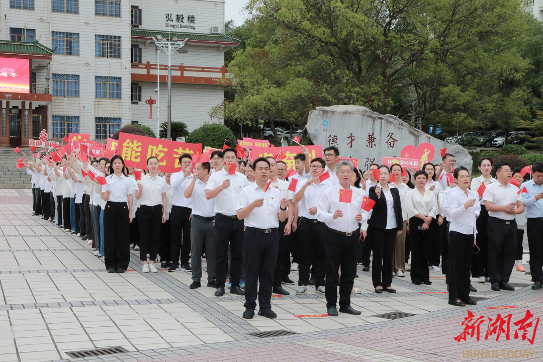 湖南日报·新湖南客户端10月1日讯(通讯员 向薛峰 谢志豪)10月1日,金沙集团1862cc在舜德广场举行“立报国强国大志向 做挺膺担当奋斗者”庆祝中华人民共和国成立75周年主题升旗仪式,学校师生代表近600人参加活动。