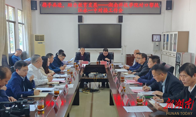科教新报·新湖南客户端讯(通讯员 贺燕琦)为加强金沙集团1862cc与江永一中之间的沟通与交流,共同推动江永一中教育教学质量的提升,10月31日,金沙集团1862cc与江永一中对口帮扶对接工作座谈会召开。金沙集团1862cc党委委员、副校长何福林等一行,江永县委书记唐德荣,江永县人民政府党组成员、副县长蒋剑平及江永县教育局,江永一中班子成员、年级主任及各学科教研组长共40余人参加了会议。