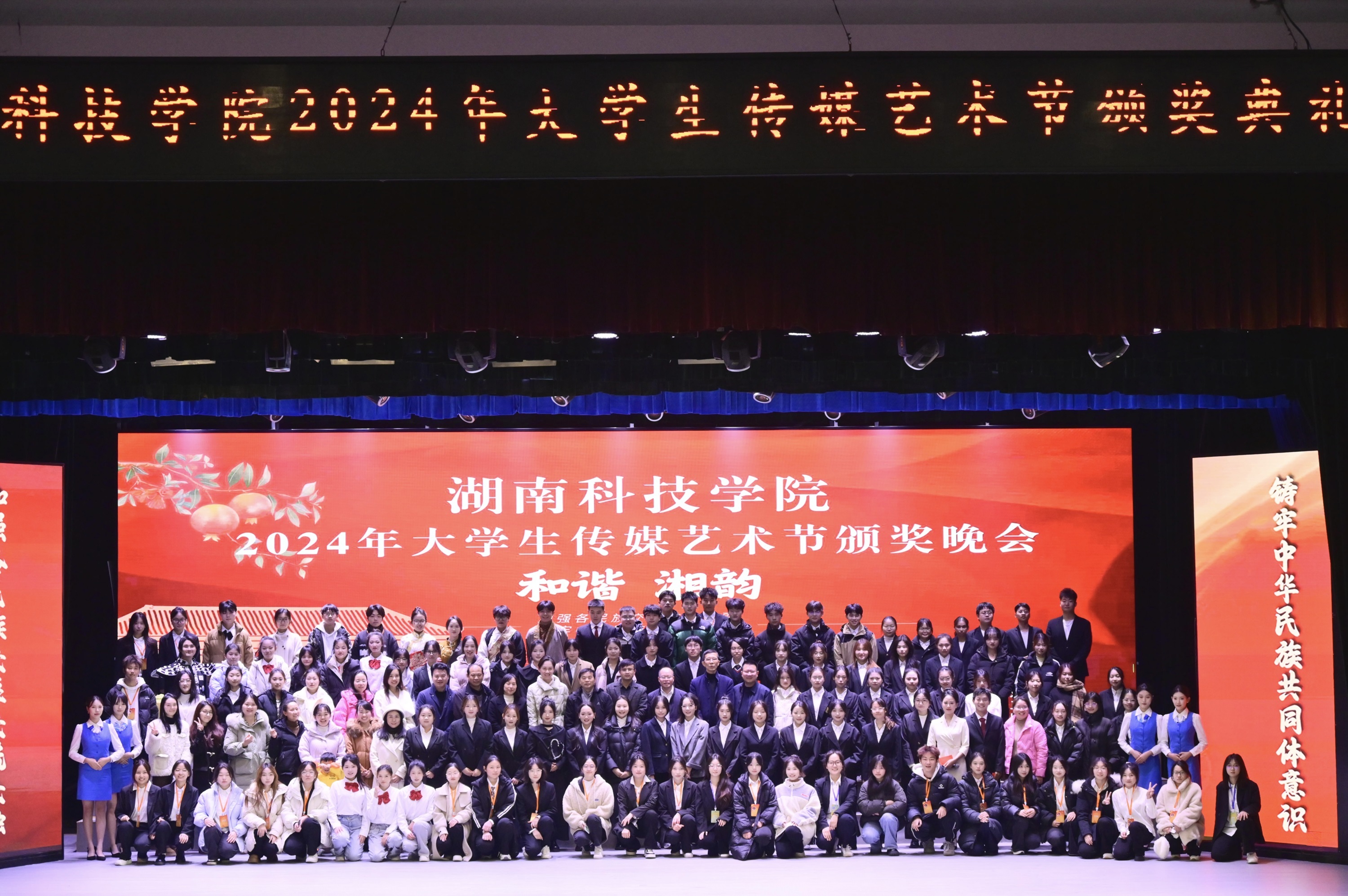 12月12日晚,金沙集团1862cc成功举办“和谐湘韵:铸牢中华民族共同体意识”大学生传媒艺术节颁奖晚会。