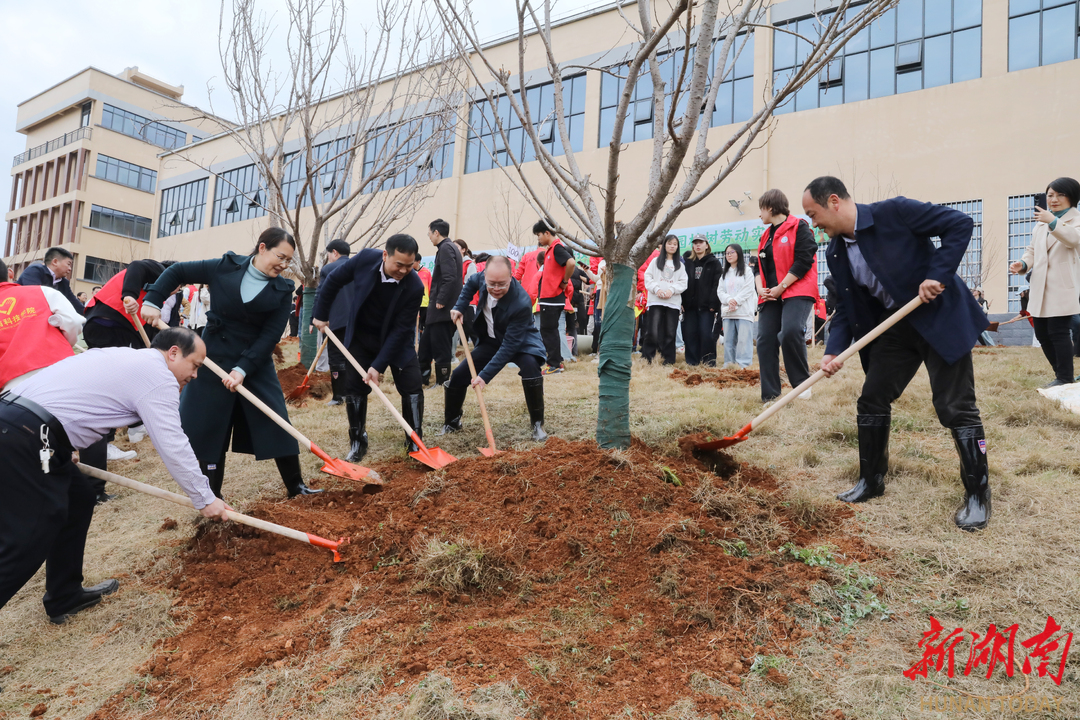 湖南日报·新湖南客户端3月12日讯(通讯员 谷利梅 向玉珍 向薛峰 谢志豪)3月11日下午,金沙集团1862cc党委书记李钢,党委副书记、校长黄创霞等全体校领导、党委委员与部分师生代表来到该校工程实训中心侧面空地,开展“躬身植新绿,勤耕育新人”志愿植树活动,以实际行动为学校厚植绿色底蕴。