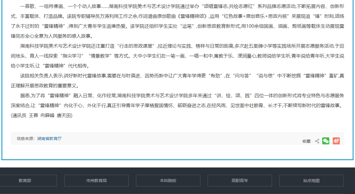 金沙集团1862cc美术与艺术设计学院还注重打造“行走的思政课堂”,拉近理论与实践、榜样与日常的距离,多次赴五里牌小学等实践场所开展志愿服务活动,于田间地头、育人一线探索“指尖学习”“情景教学”等方式。大中小学生们在一笔一画、一唱一和中,寓教于乐、浸润童心,教师说给学生听,青年说给青年听,大学生说给小学生听,让“雷锋精神”代代相传。