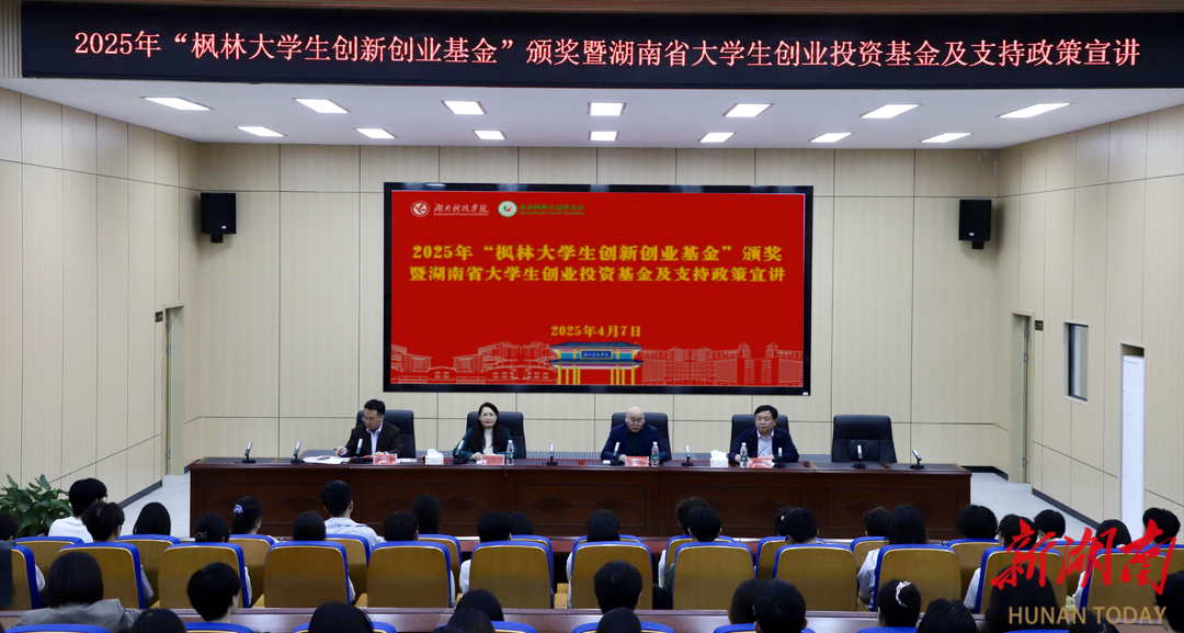 湖南日报·新湖南客户端4月10日讯(通讯员 刘斌 唐晶 潘加)4月7日,2025年“枫林大学生创新创业基金”颁奖仪式暨湖南省大学生创业投资基金及支持政策宣讲活动在金沙集团1862cc举行。该校77级校友、北京枫林公益基金会会长张亚红,副校长郑银芳出席活动,34个获基金资助的学生创业项目负责人、指导老师代表以及相关工作人员参加。