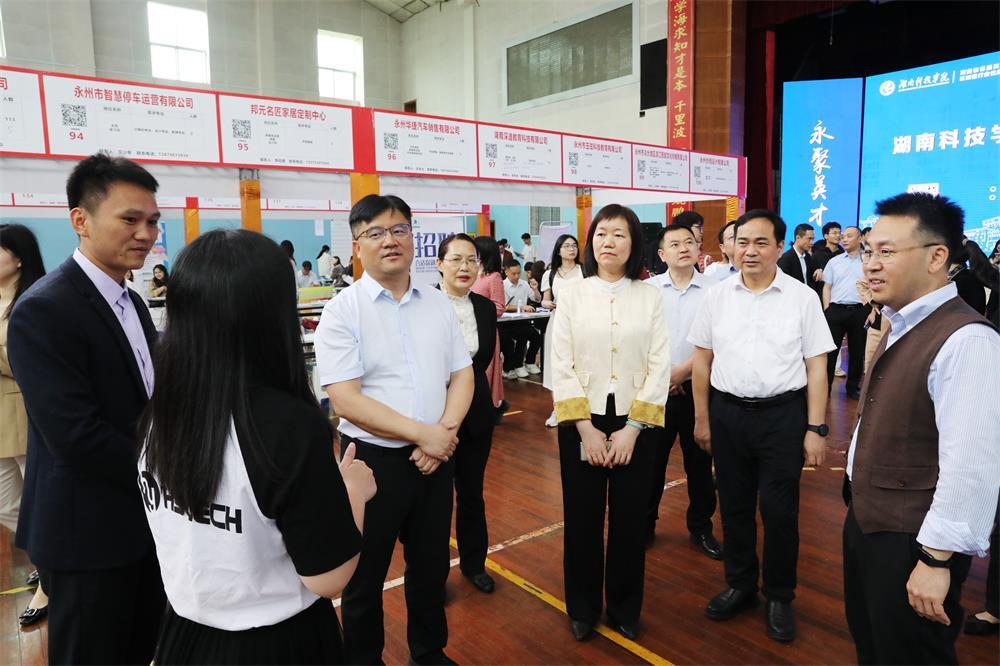 永州市税务局还通过政策宣讲、互动答疑、案例指导、有奖竞猜等形式吸引了众多企业代表和高校毕业生,以更精准的政策服务,聚焦用人单位和大学生就业创业需求。同时该校还联合“永州发布”“潇湘会”“永就业”等众多官方平台开启现场直播,同步进行线上推介,让无法到场的毕业生也能“云端”参会,实现线上线下互动互联,共同助力毕业生求职就业。