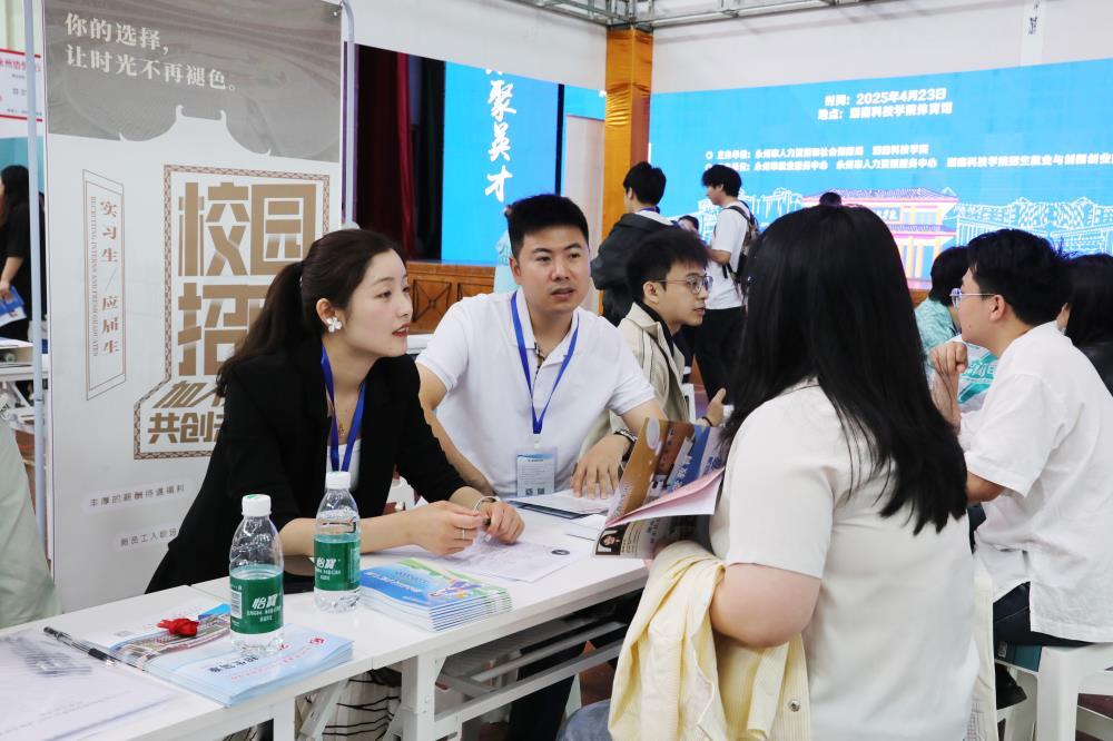 毕业生们手持精心准备的简历,积极与用人单位沟通交流。活动现场氛围热烈,功能丰富多样,开设了简历打印、简历诊断、参军入伍咨询等志愿服务点,还设置了优秀学生简历展示区、医疗服务点、高校毕业生就业创业政策宣传咨询处和税惠政策咨询处等,全方位为毕业生提供暖心服务。