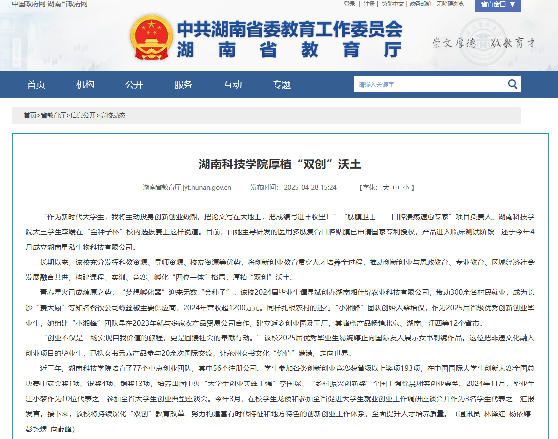 湖南省教育厅:http://jyt.hunan.gov.cn/jyt/sjyt/xxgk/gxdt/202504/t20250428_33657361.html
