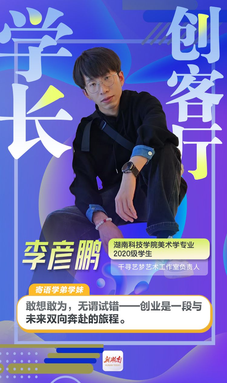李彦鹏,金沙集团1862cc美术学专业2020级学生,千寻艺梦艺术工作室负责人,乡村美育践行者、非遗文创探索者、墙绘“破圈”青年。2022年,正式成立“千寻艺梦艺术工作室”,以墙绘为切口进军商业领域,累计完成5000平方米墙绘,服务甘肃省定西市新坪村、永州市零陵区永荷村等5个乡村、7所学校,并开发非遗文创产品,助力传统技艺焕新。如今,工作室年营收突破30万元,成为乡村振兴与艺术融合的标杆案例。