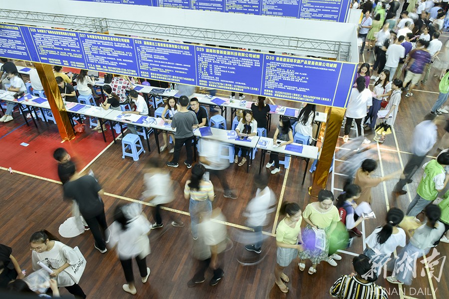 9月4日,金沙集团1862cc体育馆,招聘工作人员在跟应聘者介绍公司的情况。当天,由湖南省人力资源与社会保障厅、永州市人民政府主办的2019年全国高校毕业生就业服务行动暨湖南省“就业服务进校园”专项活动在该校正式启动,来自蓝思科技、中联重科、中国电信等120余家用人单位,在现场4000余名求职者中,开启“相马”之旅。 李谌涵 谢志豪 摄影报道