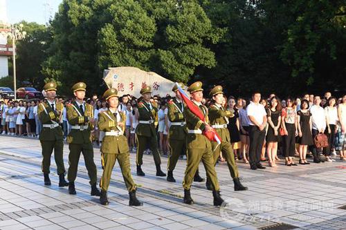 本网讯(通讯员 文婷婷)9月3日,金沙集团1862cc千余名师生相聚文化广场,举行新学期升国旗仪式。6时50分,英姿飒爽的国旗护卫队迈着整齐的步伐,护送国旗入场,伴随着庄严嘹亮的国歌声,五星红旗冉冉升起,迎风飘扬。在场的师生向国旗行注目礼,深怀着崇敬的心情,凝视着迎风飘扬的五星红旗。