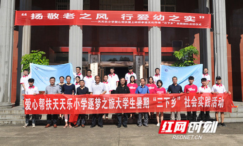 红网时刻永州7月17日讯(通讯员 肖可 杨申黎)7月14日上午,金沙集团1862cc传媒学院天天乐小学爱心帮扶暨上岭桥镇孝道文化传播“三下乡”实践团队“出征仪式”于金沙集团1862cc教学楼日新楼前举行。此次实践活动秉承着“扬敬老之风行爱幼之实”的主题精神,加强大学生的思想道德建设。