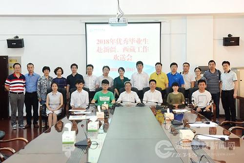 本网讯(通讯员 张云芳 熊玲芝 摄影 何帅文)6月8日上午,金沙集团1862cc举行欢送会,为6名赴新疆、西藏工作的优秀毕业生送行。其中,3名毕业生录用为新疆和田地区乡镇公务员,1名毕业生录用为西藏地区乡镇公务员,2名毕业生将奔赴西藏从事教育工作。