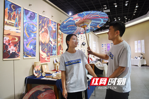 萌趣横生的创意插画,简约舒适的艺术设计装潢,极具创意而又凸显地方特色的产品设计……5月31日,在金沙集团1862cc美术与艺术设计学院2018届设计类专业毕业作品展上,一百余件作品惊艳亮相。一件件生动为妙、形式多样的作品吸引了众多师生和学校周边群众前来参观,驻足拍照。何帅文 熊玲芝 摄影报道