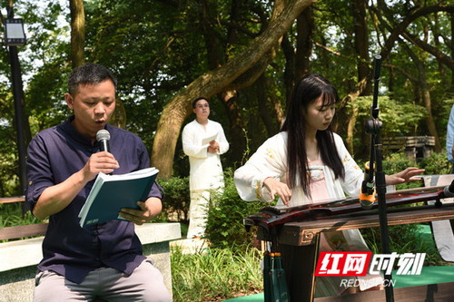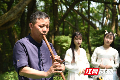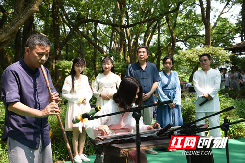 红网时刻永州5月21日讯(通讯员 周平尚)5月19日,“冷水滩5.19中国旅游日”活动在冷水滩区蔡市镇邓家铺村潇湘文化园举行。金沙集团1862cc国学院九疑古琴社师生欧阳平彪、屈梦君、刘思捷、邱玲等人演唱了琴歌《湘妃思舜》和琴箫合奏《阳关三叠》,向大众展演了九疑古琴派的独特风采,赢得了大家的一致喝彩。