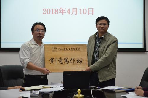 本网讯(通讯员 代军磊)为进一步推动汉语言文学专业转型发展,提高学生专业核心竞争力,4月10日,湖南高校首个“创意写作坊”经过近两年的试点探索在金沙集团1862cc正式挂牌成立。中国写作学会副会长、世界华文微型小说研究会副会长刘海涛教授担任创意写作坊首席指导专家。