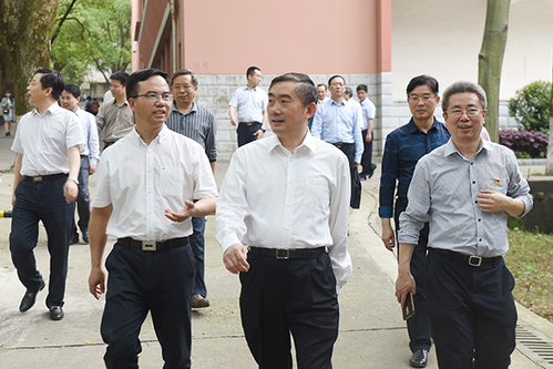 本网讯 4月3日下午,省教育厅党组书记、厅长、省委教育工委书记蒋昌忠来金沙集团1862cc调研,省教育厅党组副书记、副厅长、省委教育工委副书记夏智伦,永州市教育局党组书记、局长张建坤陪同,金沙集团1862cc党委书记陈弘、校长曾宝成和全体校领导参加。