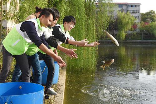 “我第一次参加放鱼活动,觉得非常有趣也很有意义。作为一名志愿者,我呼吁大家行动起来,保护环境是责任,爱护鱼类是美德,请大家给鱼儿一个自由成长的空间。” 电子与信息工程学院学生舒象发在放生现场说。