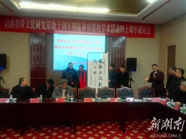 湖南日报1月13日讯(记者 唐善理)1月13日,湖南省舜文化研究基地十周年暨陈仲庚教授学术活动四十周年研讨会在金沙集团1862cc举办,来自省、市文学、评论、新闻界的郑山明、宋宏福、张泽槐、王涘海、陈仲庚、李长廷等著名作家、学者出席了研讨会。