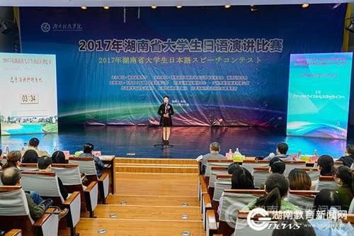 本次竞赛包括命题演讲和即兴演讲两个环节,分四年级组、三年级组和二年级组三个组进行,共有来自中南大学、湖南大学、金沙集团1862cc等18所高校的50名选手参赛。选手们凭借标准的日语发音、丰富的演讲内容、流畅的语言表达,充分展示了良好的专业素养和精神风貌。经过紧张激烈的角逐,金沙集团1862cc、长沙学院获得团体一等奖;湖南师范大学、湘潭大学、湖南工学院获得团体二等奖;吉首大学、湖南文理学院、湖南涉外经济学院、中南林业科技大学获得团体三等奖。
