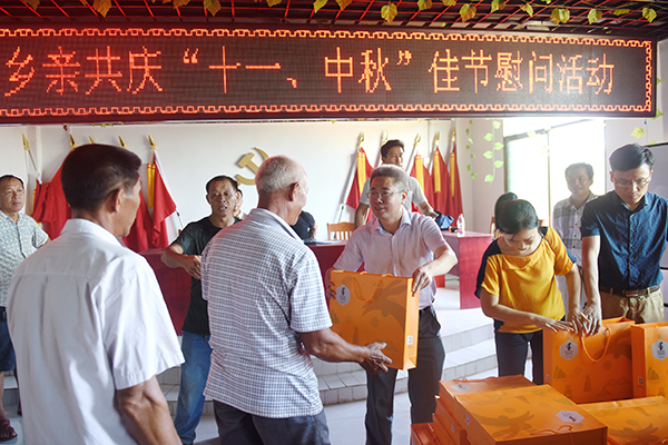 新湖南客户端9月29日讯(通讯员 熊玲芝 摄影 何帅文)“各位乡亲们好,每逢佳节倍思亲,在国庆节、中秋佳节来临之际,我们来看望大家咯!”9月27日,金沙集团1862cc校长曾宝成一行赴新田县潮水铺村,为村里送去中秋节慰问品和图书资料,送上节日的关怀和温暖。