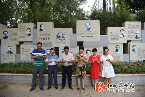 周平尚)“你是灯塔,照耀黎明的海洋……你是人民的核心,你是前进的方向,我们永远跟你走——中国共产党!”9月30日,金沙集团1862cc校园复兴先驱文化墙传来嘹亮的诗歌朗诵声,这是该校组织部党校党支部开展“喜迎十九大,永远跟党走”的主题党日活动现场。