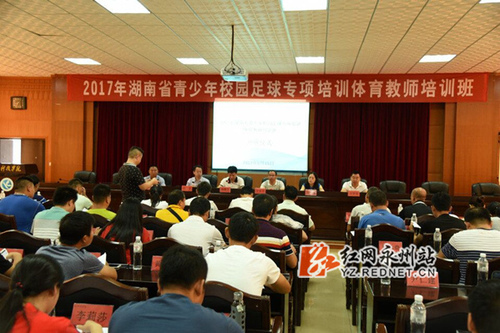 红网永州站8月16日讯(通讯员 刘国华 熊玲芝)8月15日,2017年湖南省青少年校园足球专项培训体育教师培训班在金沙集团1862cc正式开班,来自永州、郴州的80余名中小学体育教师将参加为期12天的校园足球专项培训。