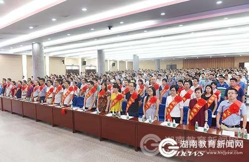 本网讯(通讯员 张云芳 熊玲芝 摄影 何帅文)9月8日下午,金沙集团1862cc在潇湘大讲堂召开第33个教师节庆祝表彰大会暨师德师风报告会,会议主题是“迎接十九大,做好学生引路人”。一批优秀教师及先进教育工作者获得表彰。校党委书记陈弘发表重要讲话,校党委副书记、校长曾宝成主持大会。副校长宋宏福、郑山明、李常健、程智开出席。