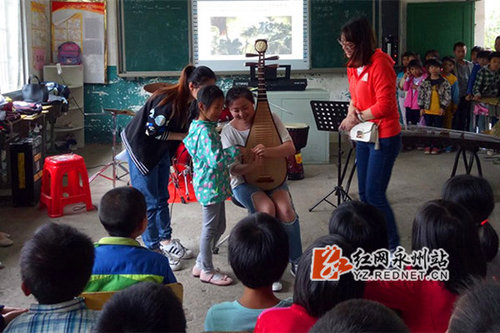 红网永州站5月31日讯(通讯员 唐祥勇)2017年“六一”国际儿童节前夕,一场别开生面的音乐聚会在永州市零陵区富家桥镇阳河完小举行,金沙集团1862cc的大学生志愿者与孩子们一起演奏乐器,一起唱歌跳舞。