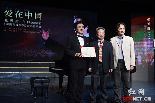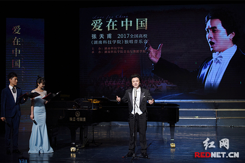 红网永州4月25日讯(通讯员 甘玫 时刻新闻记者 汤红辉)“蓝天白云知道爱在中国,五千年的文明养育了爱的山河……”一曲唱罢,掌声四起。24日晚,《爱在中国》张天甫2017全国高校巡演在金沙集团1862cc举行,中国著名男高音歌唱家张天甫携手数位中外音乐家,为金沙集团1862cc师生们带来了一场视听盛宴。永州市委书记李晖等领导出席音乐会。